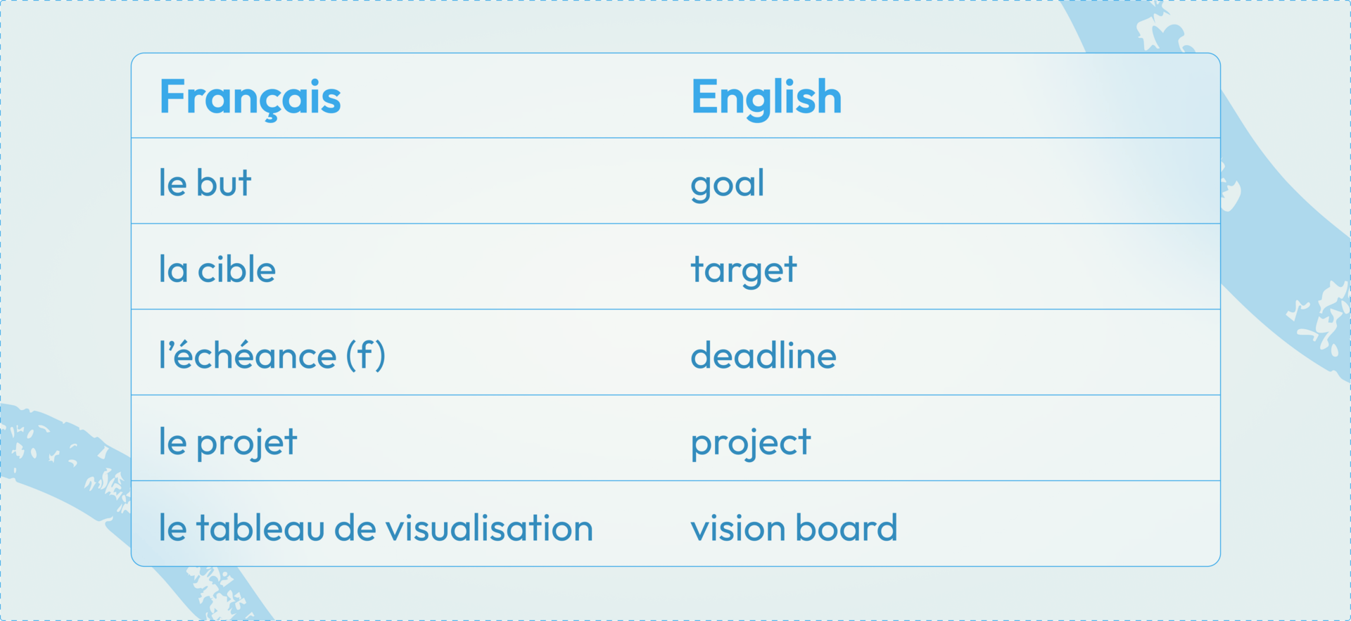 Le vocabulaire qui parle des objectifs peut permettre d’exprimer des intentions importantes. Certains mots sont très similaires à l’anglais, mais d’autres sont éloignés.
